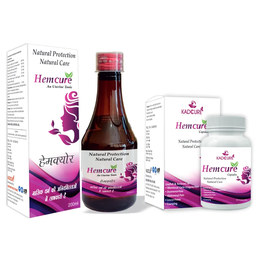 | Kadcure Hemcure is an Ayurvedic formulation designed to support women’s wellness. It helps in managing leucorrhoea and promotes healthy, regular menstruation. This natural tonic works to balance hormones and provides support for overcoming PCOS-related concerns, Promote reproductive health and menstrual well-being safely and holistically. |